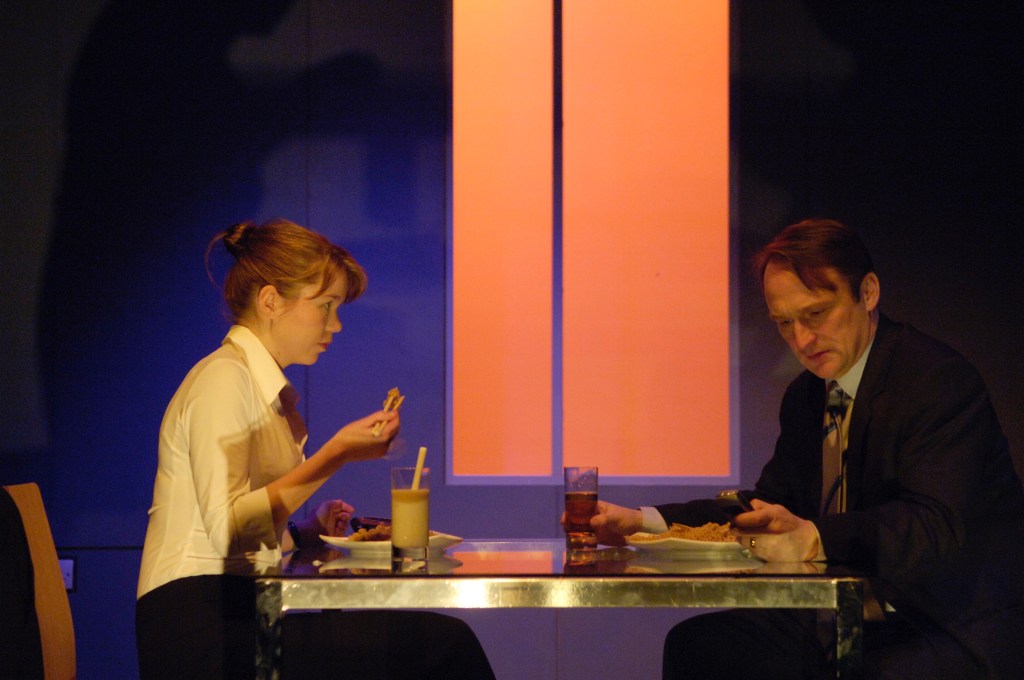 Other Hands by Laura Wade, Soho Theatre, dircted by Bijan Sheibani, designed by Paul Burgess. Cast in this photo: Anna Orton and Michael Gould.