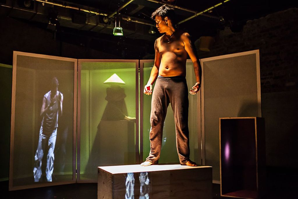 Stranger, by Same Stuff Theatre with perormers Phan Y Ly and Ho Ngoc Bao Khiem, director Rob Hale and scenographer Paul Burgess. BlackBox, Hanoi, World Stage Design, Cardiff, Tara Arts, London, and The Albany London
